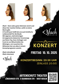 Am 10. Oktober ist es wieder soweit. Mit meinen Mädels von 3fach dürfen wir im legendären Artenschutztheater in Berlin auf die Bühne.